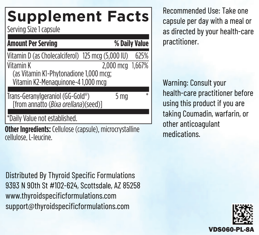 These two nutrients work hand-in-hand to promote strong bones, healthy arteries, and a well-balanced immune response. Since vitamin D and K depend on each other for proper function, this formula pairs them in the right proportions so your body can use them effectively.